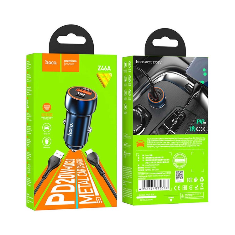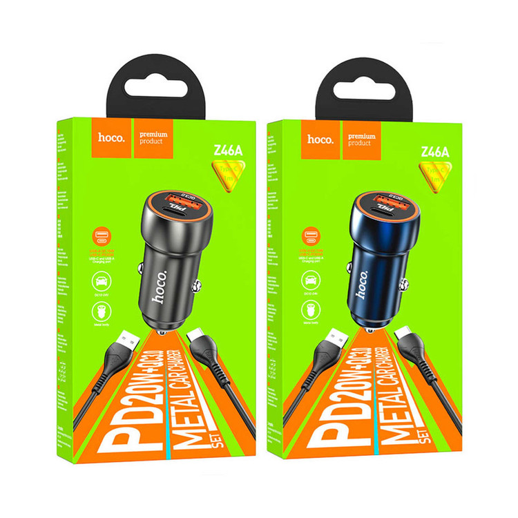 شارژر فندکی 20 وات هوکو مدل Z46A به همراه کابل تبدیل تایپ سی