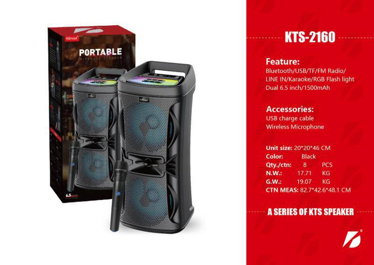 KTS‑2160 فقط یک اسپیکر نیست — یک **همراه مراسمی** است! چه برای مهمانی خانگی، عروسی، کمپینگ یا حتی تمرین آواز، این اسپیکر با صدای پرقدرت 10 واتی و بیس غنی، فضای هر جمعی را زنده میکند. دسته حمل بالا و باتری داخلی، آزادی کامل برای استفاده در هر جایی را به شما میدهد.