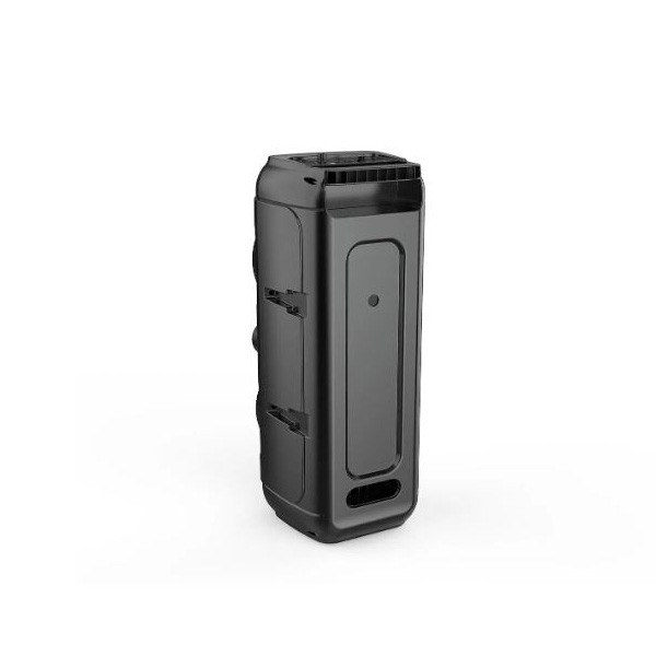 مشخصات ظاهری و فیزیکی نوع اسپیکر (بلندگو): قابل حمل ابعاد: 660x250x260 میلیمتر وزن: 3800 گرم وزن هر بلندگو (ستلایت): 3800 گرم جنس بدنه: پلاستیک مشخصات صوتی و قابلیتها توان خروجی کلی: 40 وات نسبت سیگنال به نویز: 50 دسی بل نوع اتصال: بلوتوث , بیسیم , دانگل USB , دانگل USB و بلوتوث نوع باتری: لیتیومی ظرفیت باتری: 4500 میلی آمپر ساعت منبع انرژی: USB , آداپتور برق , باتری , برق اقلام همراه بلندگو: کابل شارژ،ریموت کنترل،میکرفون