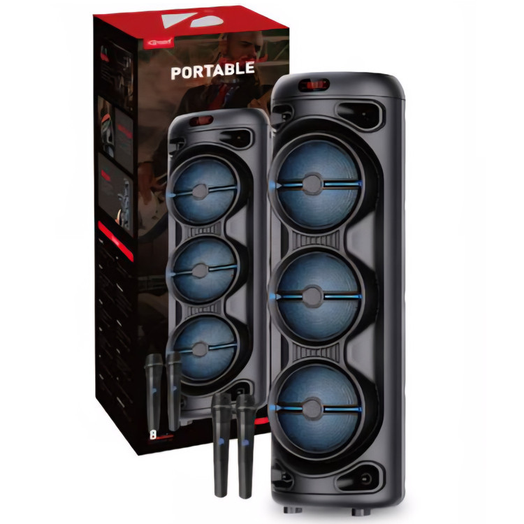 مشخصات ظاهری و فیزیکی نوع اسپیکر (بلندگو): قابل حمل مدل: 2142 ابعاد: 32*32*90 میلیمتر وزن: 7800 گرم جنس بدنه: پلاستیک تعداد بلندگوها: سه تکه یا بیشتر رقص نور: نور RGB مشخصات صوتی و قابلیتها نوع اتصال: بلوتوث درگاهها و فناوریهای ارتباطی: میکروفون , Bluetooth منبع انرژی: باتری قابل شارژ اقلام همراه بلندگو: دو عدد میکروفن