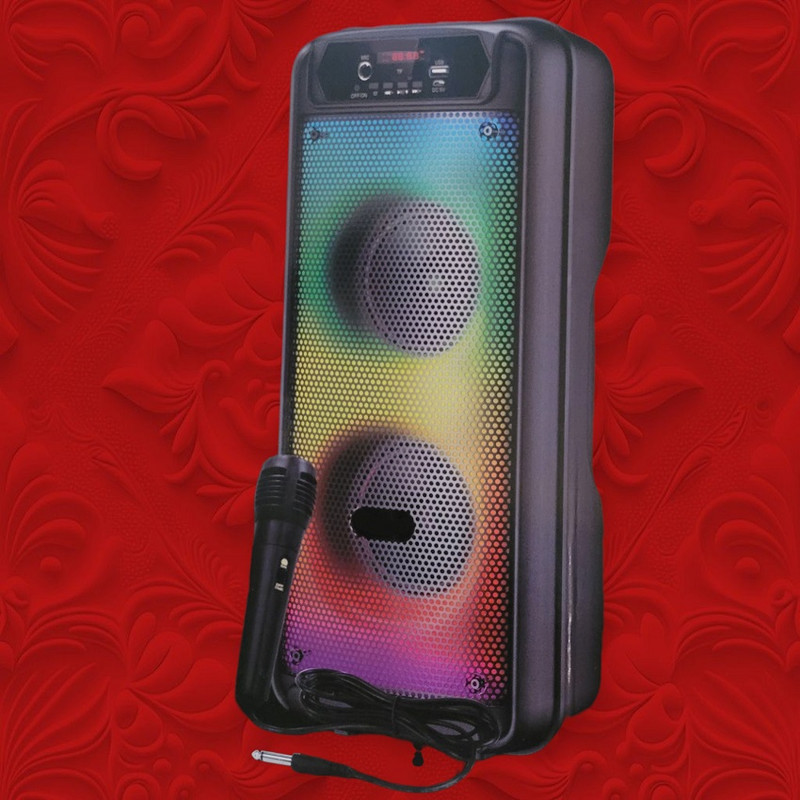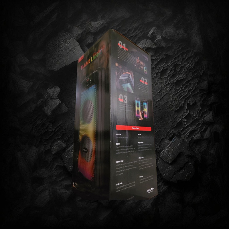 مشخصات ظاهری و فیزیکی نوع اسپیکر (بلندگو): قابل حمل ابعاد: 420×180×150 میلیمتر وزن: 1640 گرم وزن هر بلندگو (ستلایت): 1640 گرم جنس بدنه: پلاستیک مشخصات صوتی و قابلیتها نوع اتصال: بلوتوث , دانگل USB منبع انرژی: باتری قابل شارژ اقلام همراه بلندگو: میکروفون / کابل شارژ